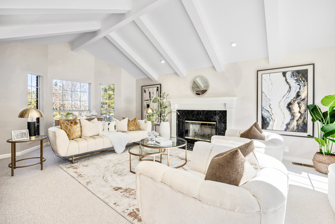 Tucked away in Emerald Hills on a quiet cul-de-sac, this 3,110 sq. ft. home on a 0.3-acre lot balances elegance and comfort. The entry opens to soaring ceilings and a light-filled living room with vaulted beams, bay window, and fireplace, flowing into a spacious dining area.